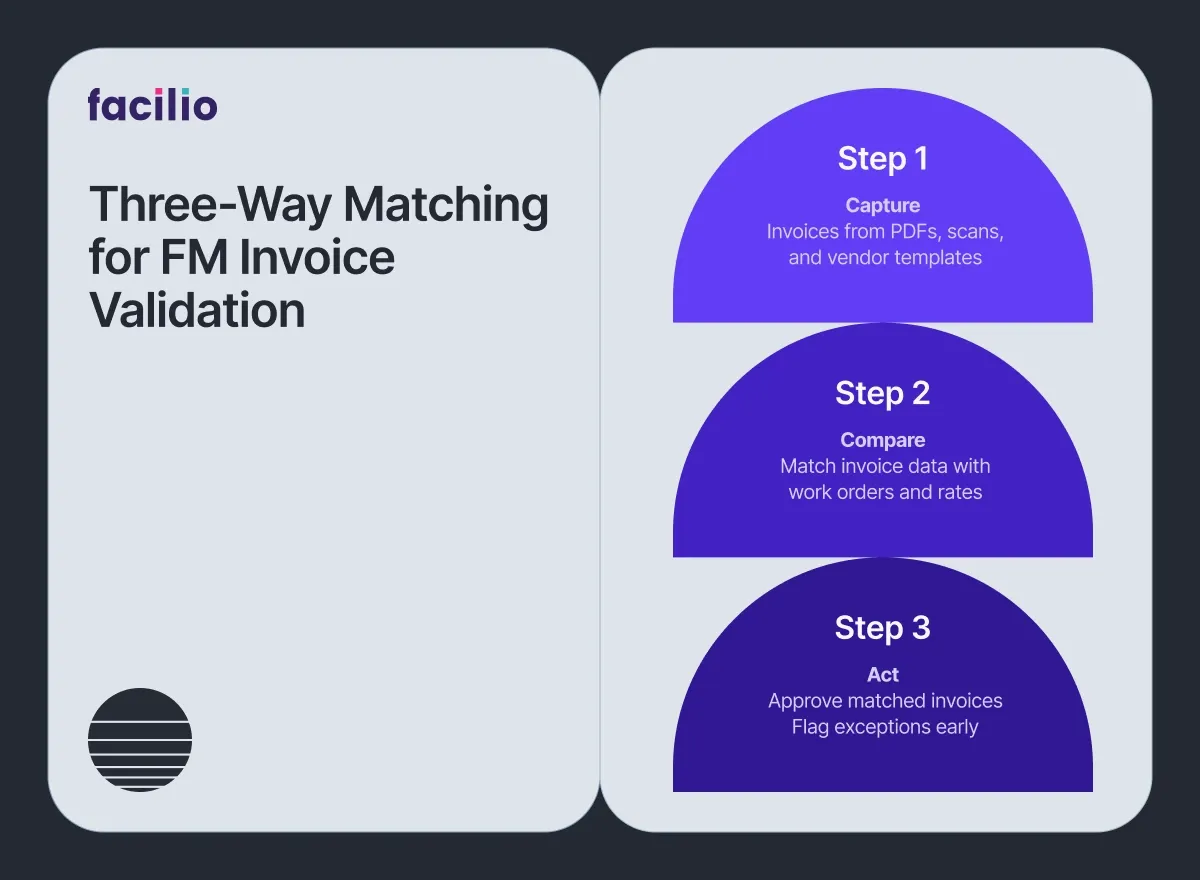 See AI Invoice Validation in ActionThree-Way Matching — How AI Connects Invoices, Contracts, and Work Orders in Facilities Management