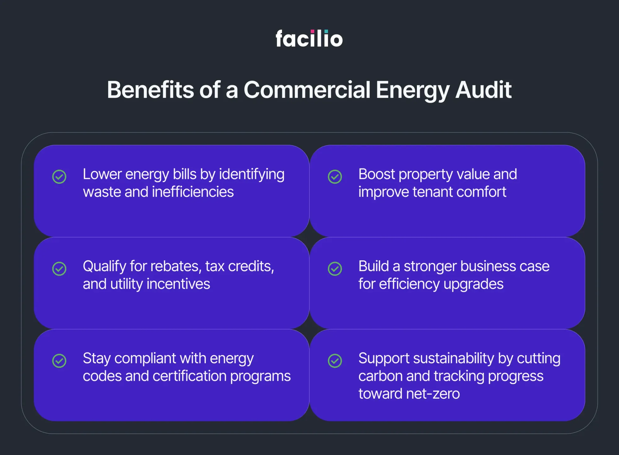 A well-executed facility energy performance audit or facility energy efficiency audit addresses this waste and sets the foundation for ongoing savings. Here are five core benefits of conducting energy audits in commercial buildings: