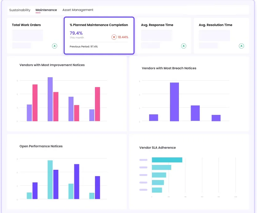 Its platform architecture helps you manage all facilities and operations from a unified platform, gives you 360-degree visibility into your operations, balances proactive and reactive maintenance to reduce downtime and optimize resources, and gives you real-time ops and growth insights.