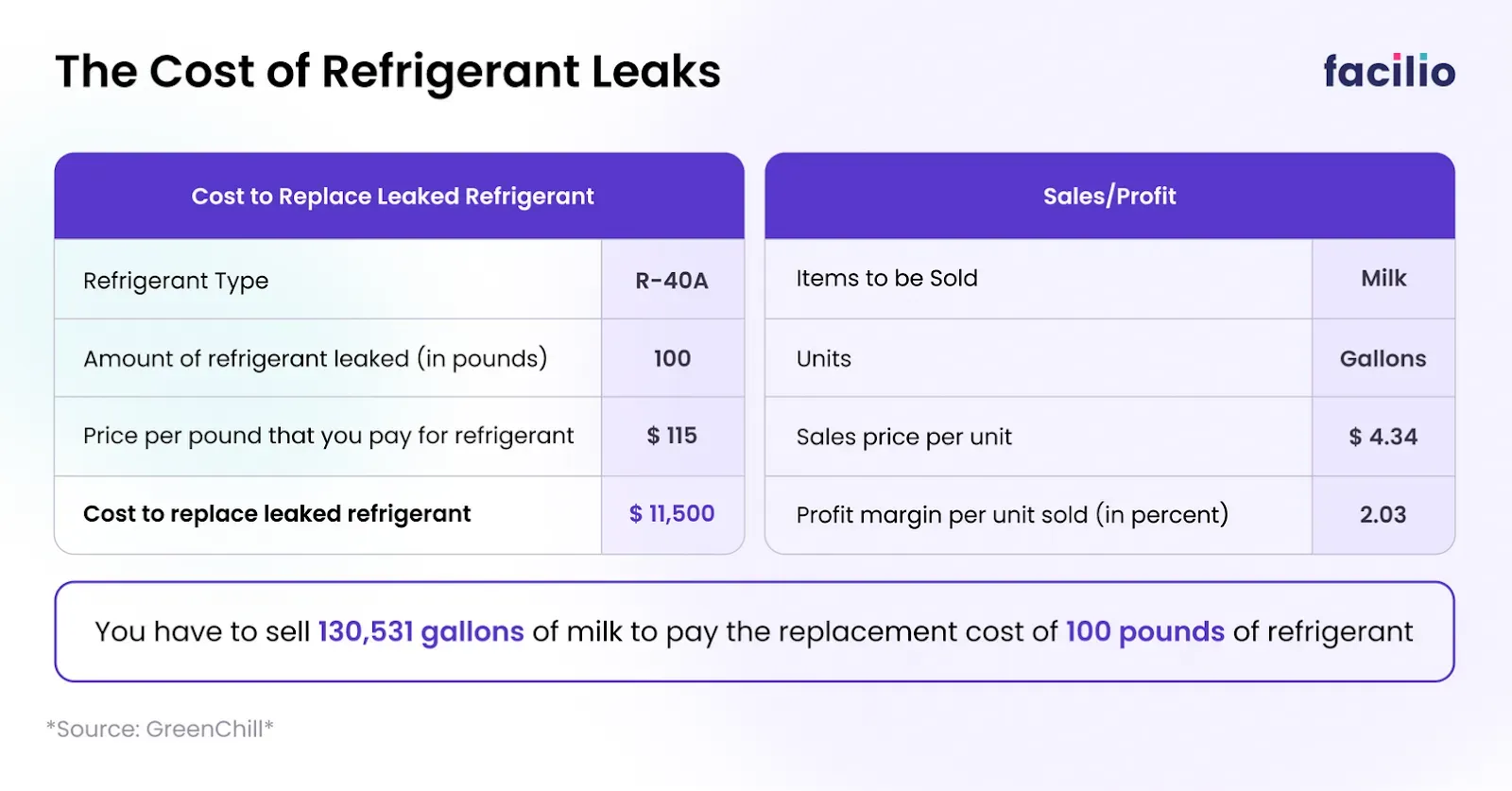 Further, there are costs attached to replacing refrigerant leaks with a severe impact on the bottomline. The image below provides the math: