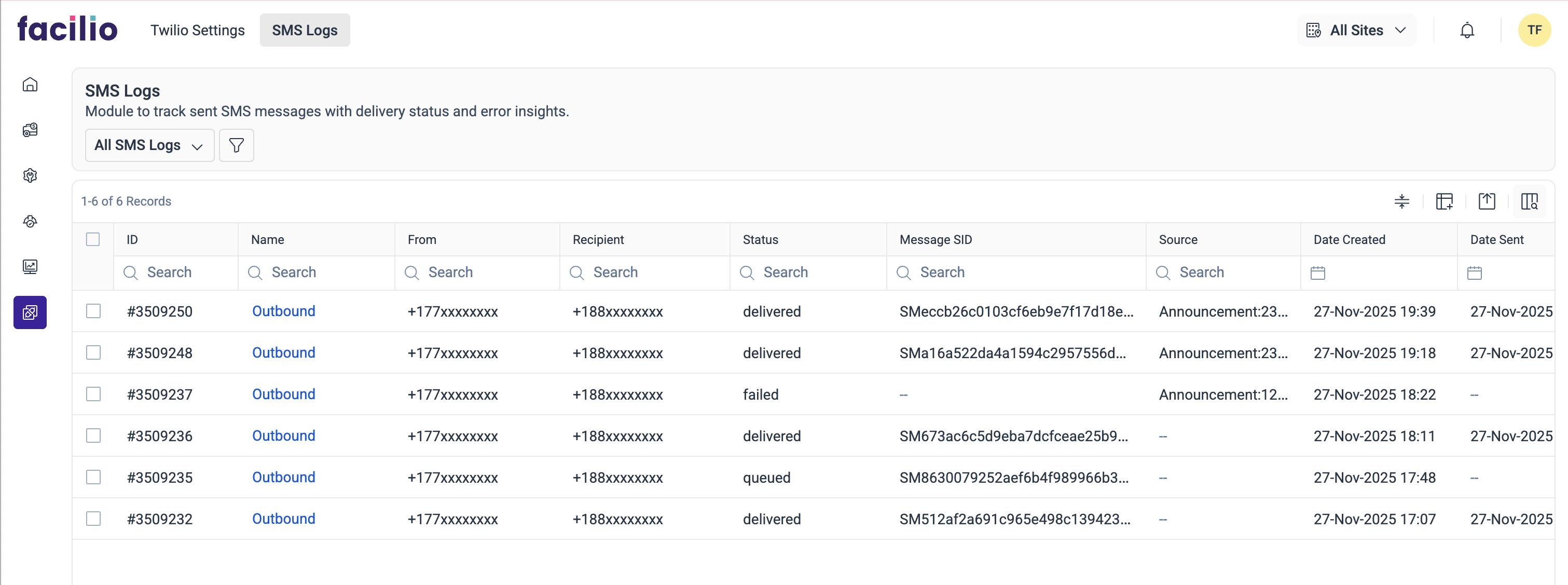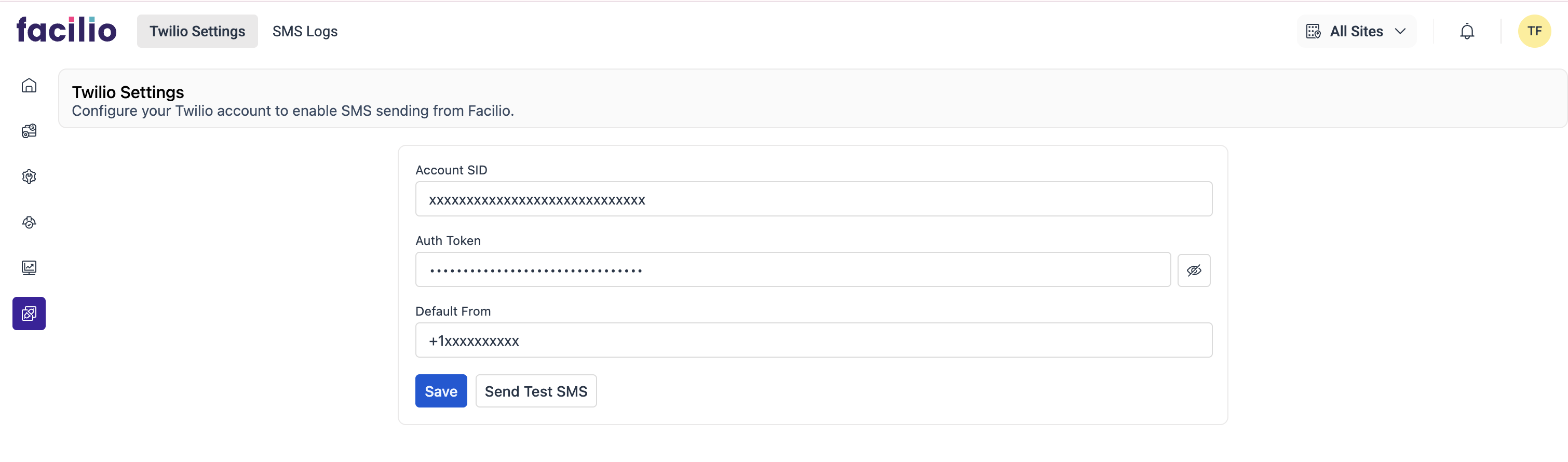 Facilioβs Twilio integration enables reliable, automated SMS communication for operational workflows. By combining configurable sender options, detailed message tracking, and workflow automation, organizations can streamline communication and improve service response times.
