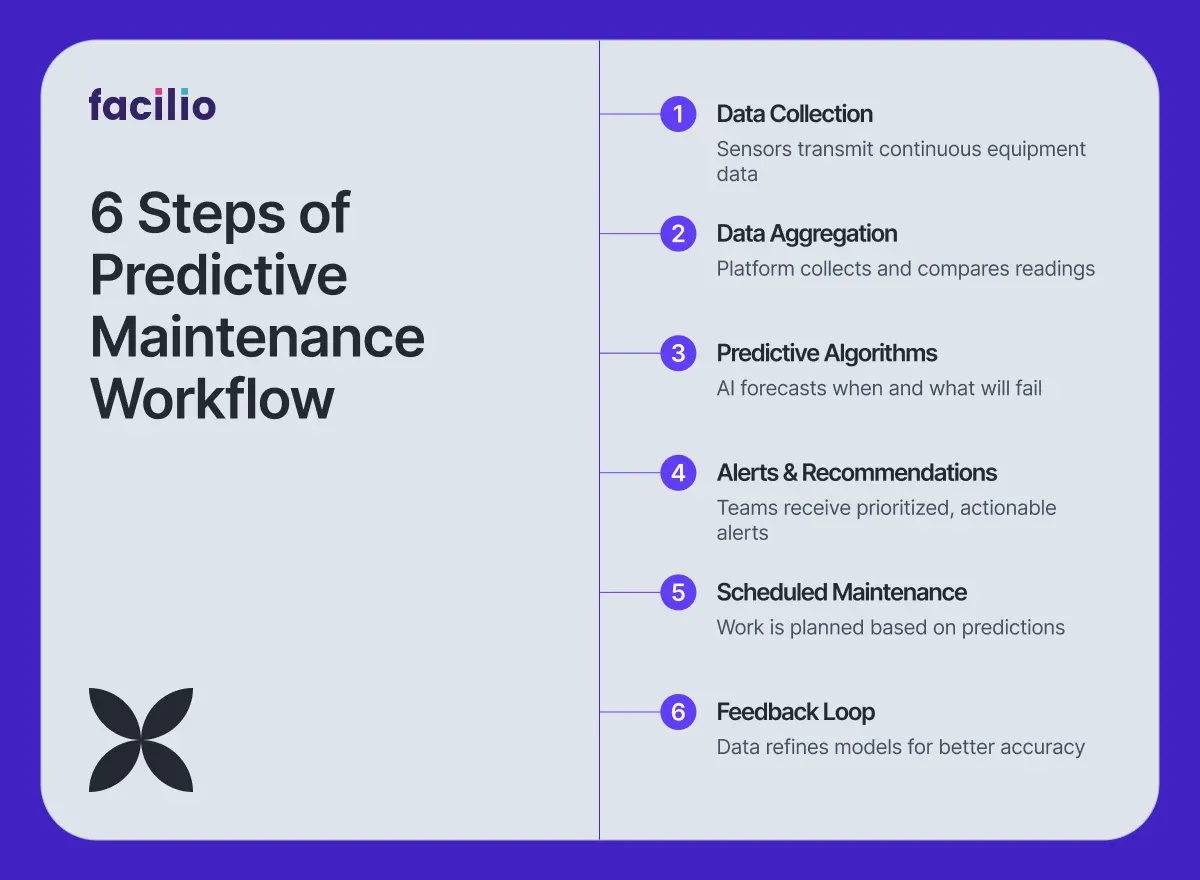 IoT devices and sensors are instrumental in predictive maintenance, facilitating the connection between physical assets and the digital world. According to a McKinsey report, using IoT sensors in facilities can reduce maintenance costs by up to 25% and equipment downtime by 70%, improve productivity by 25%, and extend asset lifetime by several years.