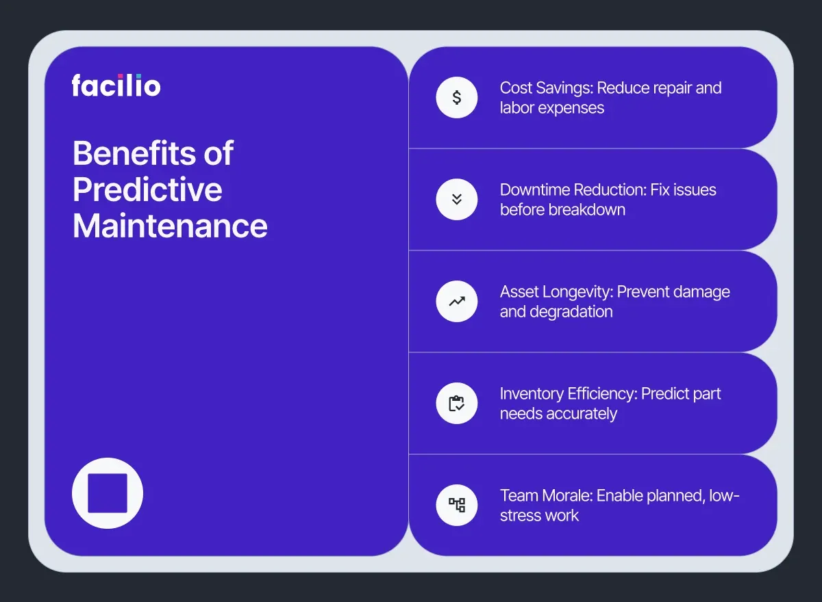 These warnings prompt the maintenance team to take preventive measures before the equipment or asset breaks down.